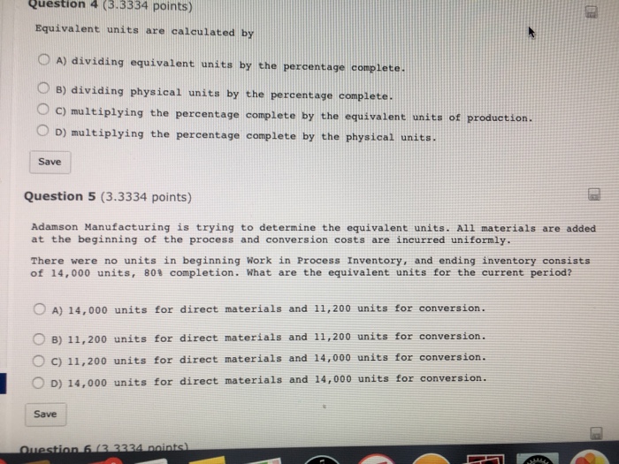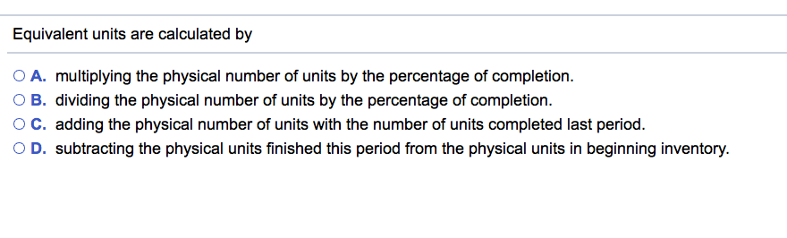 Solved Equivalent Units Are Calculated By O A Multiplyin Chegg Com