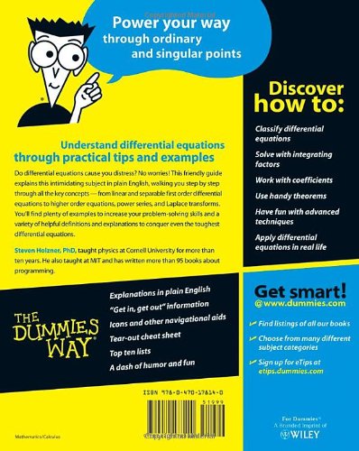 Differential Equations For Dummies is the perfect companion for a college differential equations course and is an ideal supplemental resource for other calculus classes as well as science and engineering courses. Differential Equations For Dummies is the perfect companion for a college differential equations course and is an ideal supplemental resource for other calculus classes as well as science and engineering courses. This book is a companion to the theory book Differential Equations for Dummies.